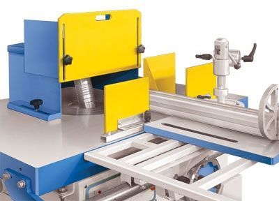 Комплект для шипонарезания состоит из кожуха Ø 400 мм, специального стола, установленного на каретку и поворотной линейки с эксцентриковым прижимом(опция). Есть возможность доукомплектовывать станок быстросменными шпинделямиØ 32 ; Ø 40 ; Ø 50 мм. и 2-мя удлинительными столами справа и слева от рабочего стола.
