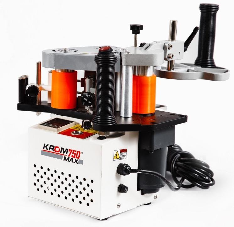 КРОМ750 МАХ - это модель с самой полной комплектацией в линейке ручных кромочников серии КРОМ. Главным отличием и конструктивным преимуществом станка, по сравнению с другими ручными станками, является наличие второго клеевого вала. За счет этого клей наносится не только на кромку, но и на торец детали, что обеспечивает лучший результат кромкооблицовки. В сравнении с младшими ручными станками серии КРОМ750, у станка в полтора раза больше клеевая ванна объемом в 300 мл. В комплектации станка предусмотрен минимальный ремкомплект, набор ключей и расширительный стол с металлическими каркасом. Допускается использование станка как в стационарном положении, установив его в расширительный стол из ДСП, так и ведение станка в руках относительно закрепленной детали. В отличии от представленных на российском рынке аналогов ручных станков с двумя валами, имеет более высокое качество сборки и комплектующих, а как результат - значительно дольше срок службы станка.