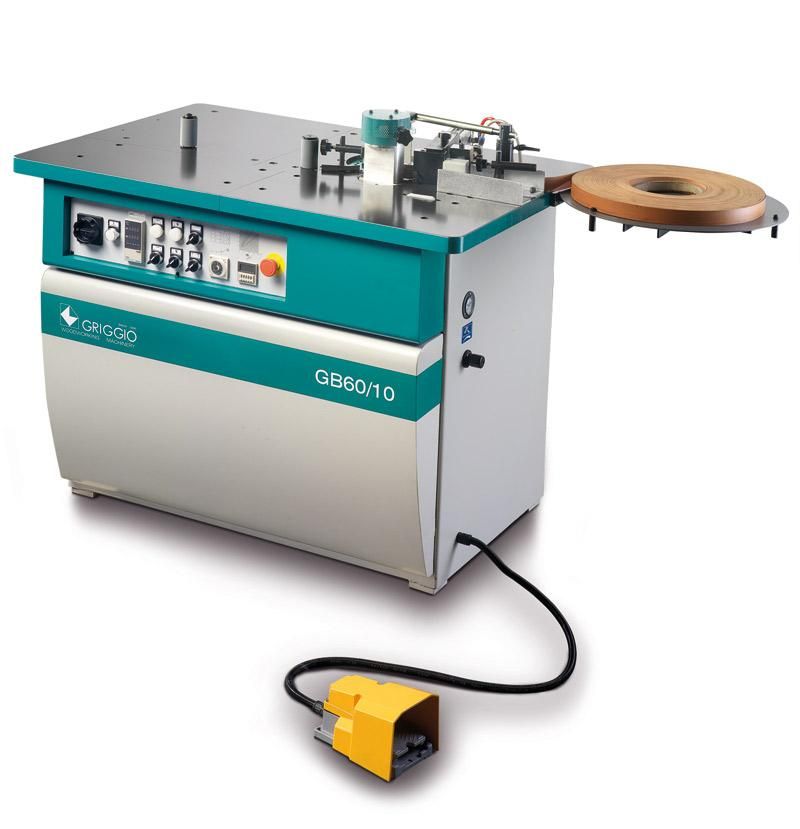 Ручной кромкооблицовочный станок предназначен для облицовывания прямолинейных и криволинейных кромок мебельных щитов и заготовок натуральным полосовым или синтетическим рулонным материалом. Приклеивание ведется при ручной подаче заготовки. Станок оснащён одним клеенаносящим роликом для нанесения клея-расплава на кромочный материал высотой до 60 мм. Оснащён механизмом предварительной торцевой обрезки и электронным термостатом. Можно использовать как рулонный, так и полосовой материал фиксированной длины.