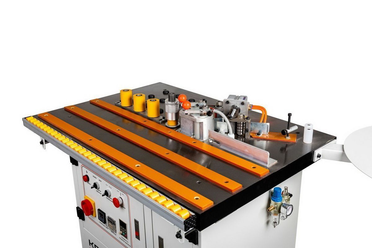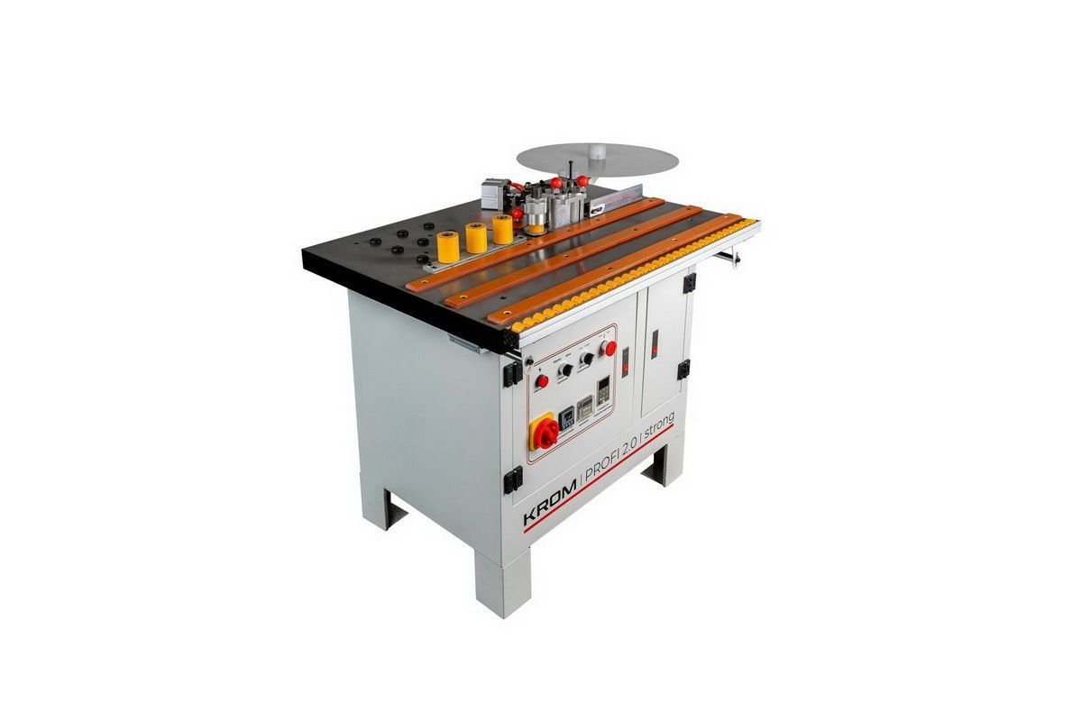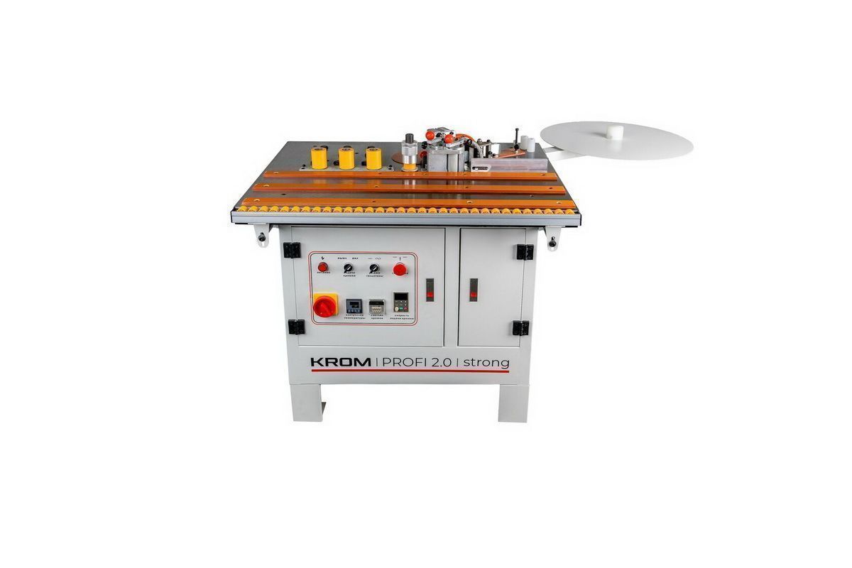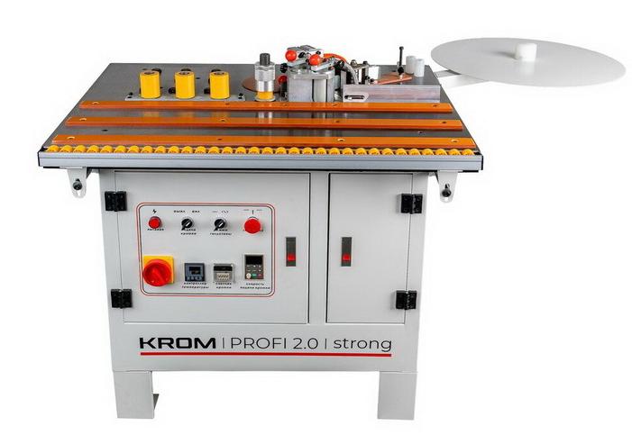 KROM PROFI 2.0 strong – это стационарный кромкооблицовочный станок с ручной подачей заготовок и питанием от сети в 380V. Отличное качество клеевого узла и остальных комплетующих, большой вес, мощный двигатель. Комбинированная рабочая поверхность – линейные направляющие и точки. Надежный цепной привод. Нагревательные элементы – классические пальчиковые ТЭНЫ (дешевле в обслуживании, в сравнении с ТЭНом «пластина»). Плавная регулировка скорости подачи кромки до 15 метров в минуту (цифровой контроллер работает через инвертор). Пожалуй, PROFI 2.0|strong один из лучших вариантов по качеству на рынке РФ.
