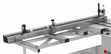 Каретка шириной 400 мм состоит из многокамерного алюминиевого профиля, перемещающегося по стальным цилиндрическим направляющим, которые обеспечивают высочайшую точность и качество распиловки. Практика основных производителей показывает, что на сегодняшний день такой тип каретки обеспечивает надежность, долговечность и практически не требует технического обслуживания на протяжении длительного срока службы.