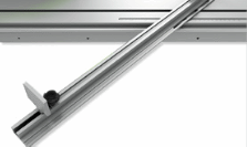 ПОПЕРЕЧНАЯ ЛИНЕЙКА Поперечная линейка станка жестко фиксируется к поддерживающему столу в двух точках строго под углом 90° к линии пропила. Настраивается один раз и не требует дополнительных регулировок. Данная конструкция исключает смещение линейки во время работы и гарантирует идеальную геометрию резов. |