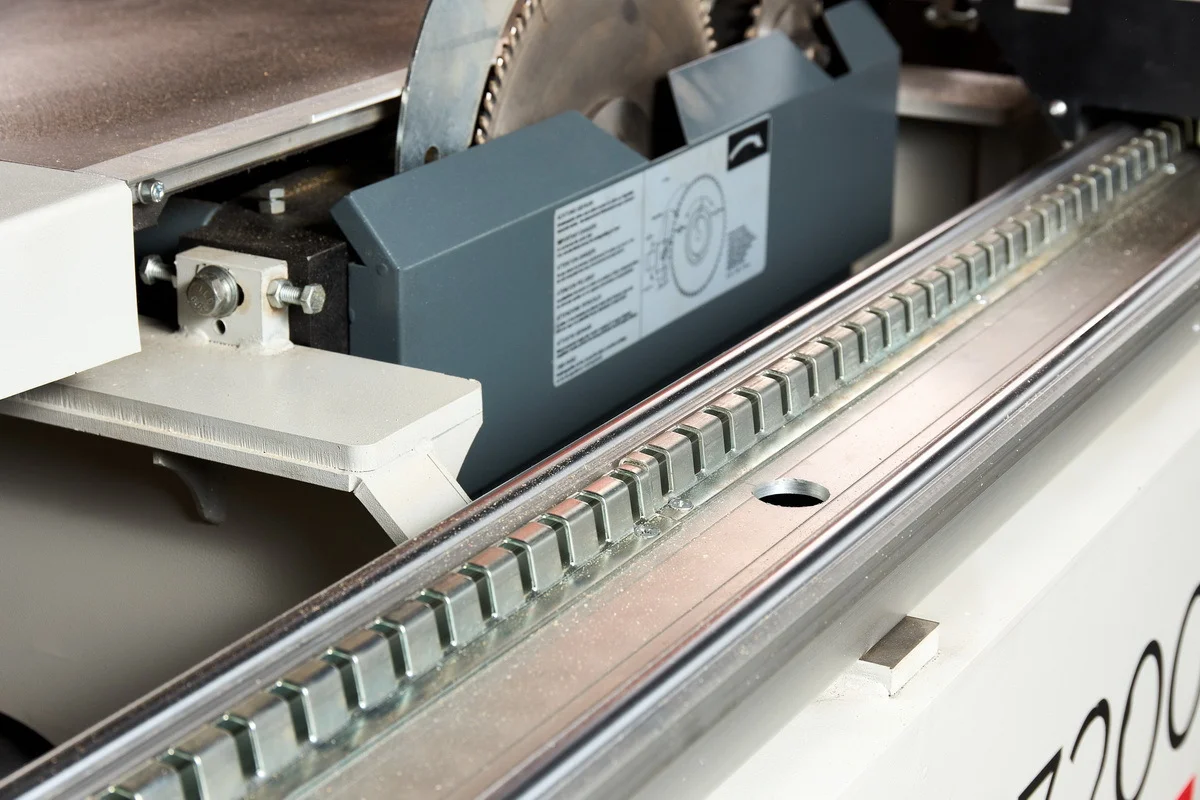 Форматник без завала пильного узла, но при этом за счёт упрощения конструкции очень надёжный и стабильный. Полноразмерная роликовая каретка в 3200мм с возможностью сервисного обслуживания. Литой пильный узел. Крепкое навесное оборудование, как результат настройки не сбиваются. Подрезка не гуляет, регулировка быстрая и удобная. Надежная рабочая лошадка для полноценной работы с объёмом раскроя до 50 листов в день.