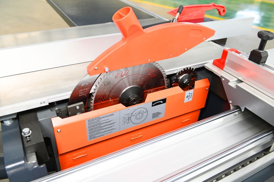 Алюминиевая роликовая каретка шириной 360 мм, стальные цилиндрические направляющие обеспечивают высочайшую точность и качество распиловки. Опыт основных производителей показывает, что на сегодняшний день такой тип каретки наиболее надежен, долговечен и практически не требует технического обслуживания. На передней части каретки расположен откидной рычаг, который фиксирует положение каретки в любом месте, что особенно удобно при загрузке материала.