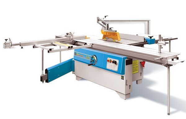 Длинная алюминиевая каретка (пр-ва Германии) на закалённых стальных направляющих и широкий поперечный стол позволяют устанавливать и перемещать относительно пильного механизма листы большого формата. Пильный механизм включает в себя два режущих узла: основную пилу и подрезную пилу. Подрезная пила имеет попутное вращение относительно подачи заготовки и за счёт предварительного реза позволяет раскраивать ламинированные листы ДСП без появления сколов.