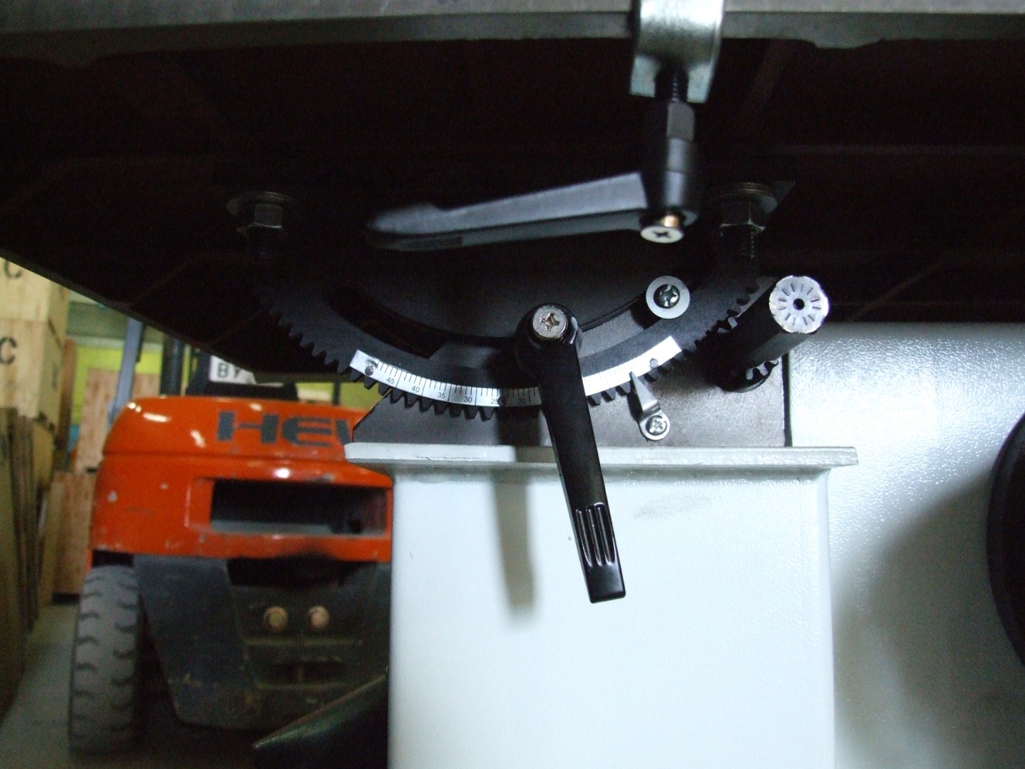 Настройка натяжения пилы – с помощью маховика над столом.