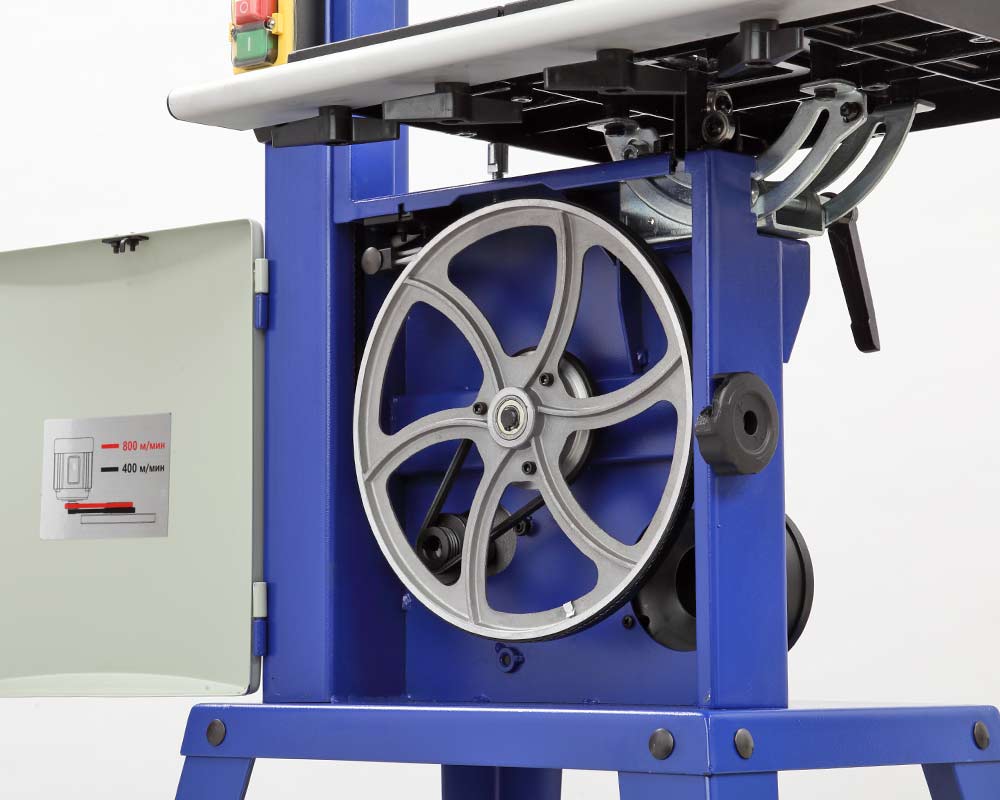 Станок имеет две скорости пильного полотна: 1 - 400 м/мин., 2 - 800 м/мин.