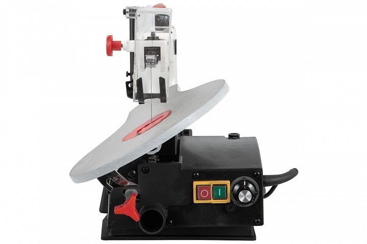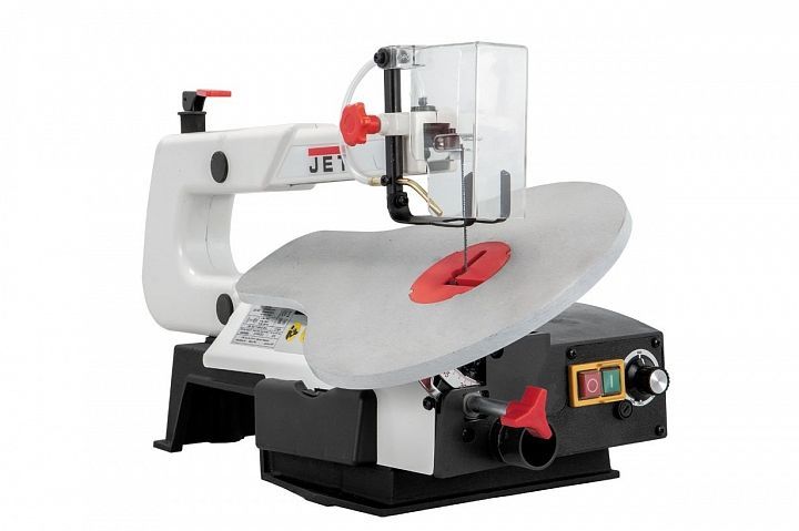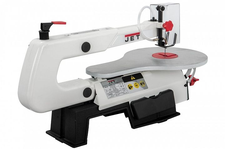 JSS-16A – любительский станок для выпиливания сложных радиусов в не слишком крупных заготовках из древесины, ДСП, ДВП, фанеры или пластмассы. Модель представляет собой улучшенную модификацию хорошо известного лобзикового станка Jet JSS-16 и имеет ряд интересных конструктивных особенностей, выгодно отличающих ее от аналогов других марок. Прежде всего, это универсальность в отношении используемых полотен: можно устанавливать пилки как со штифтовым креплением, так и без него. Важно отметить удобное верхнее расположение рычага натяжения полотна. Новое усовершенствование в конструкции – возможность изменить ориентацию плоскости распила: вдоль или поперек продольной оси станка, смотря как удобнее или привычнее оператору.