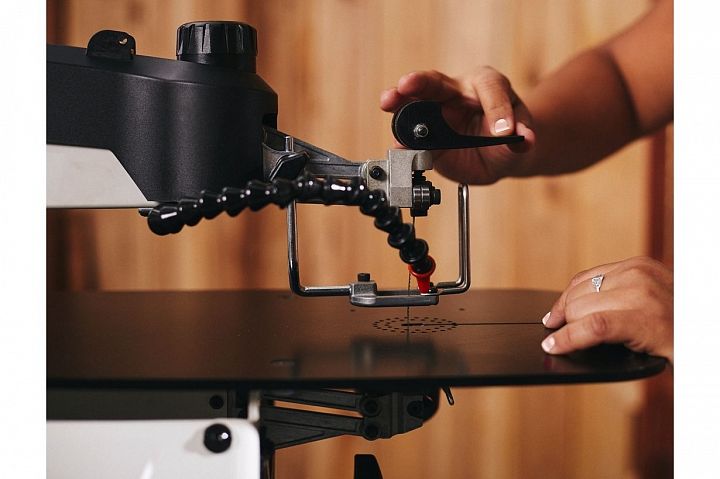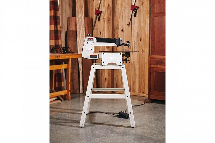 JWSS-18B – профессиональный лобзиковый станок для взыскательных пользователей, требовательных к точности и удобству работы. Конструкция механизма, общая компоновка и совершенство в деталях, вот что отличает эту модель от большинства аналогов, как любительского, так и профессионального классов.