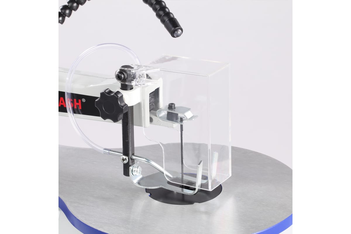 Зона реза оснащена защитным пластиковым экраном и LED-подсветкой с гибким основанием.
