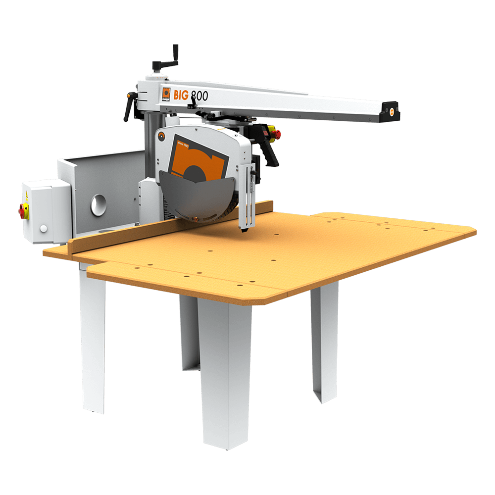 Радиальная пила Big 800 предназначена для распиливания заготовок под различными углами, в вертикальной и горизонтальной плоскости, заготовок из массива различных пород и любого схожего материала.Каретка с электродвигателем и пильным диском вручную перемещается по направляющей в горизонтальной плоскости и поворачивается под любым углом. Радиальная пила универсальна и проста в обслуживании. Точность реза делает ее незаменимой на любом столярном производстве.