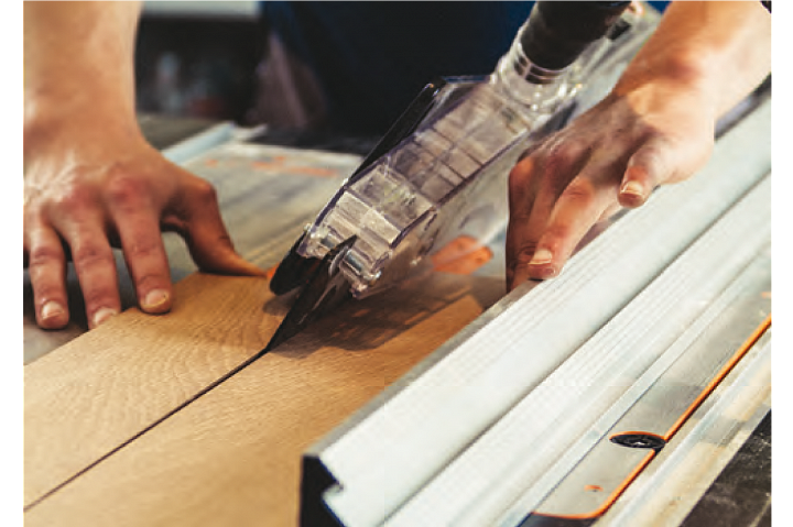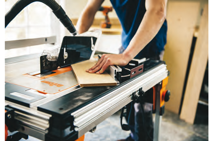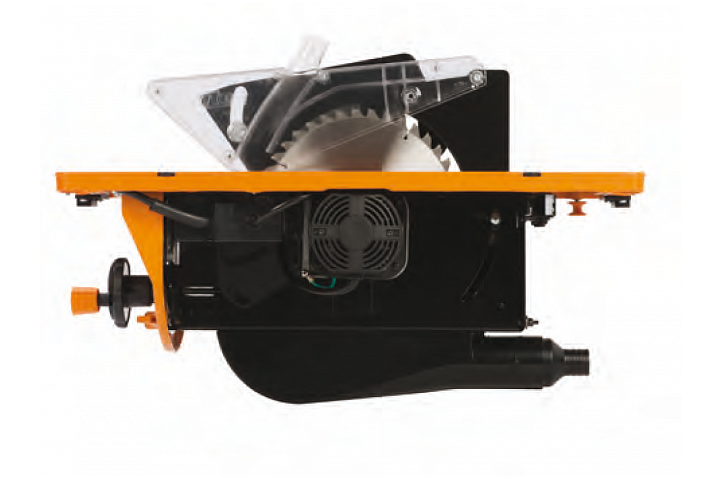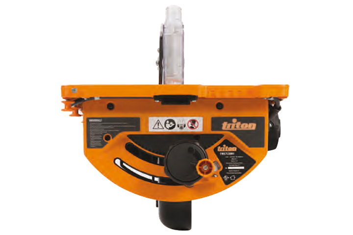 Пильный модуль TWX7CS001 это циркулярная пила с рабочей поверхностью из алюминиевого литья; является принадлежностью «Ворк-центра» ТWX7. В комплект поставки модуля входят угловой и параллельный упоры, которые фиксируются на основании базового модуля (стола). Для облегчения регулировки глубины пропила предусмотрена съемная рукоятка, как у фрезера TRA001 с системой микролифта. Рукоятка регулировки угла наклона выведена на переднюю сторону и легко доступна. Включение и выключение производятся кнопками на верстаке «ворк-центра».