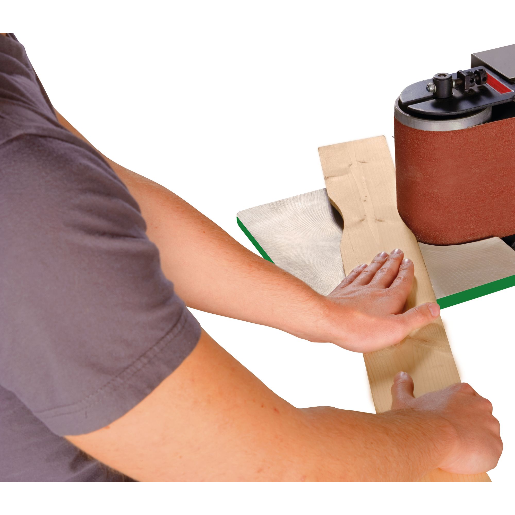 - Пружинное натяжное устройство для равномерного натяжения шлифовальной ленты.