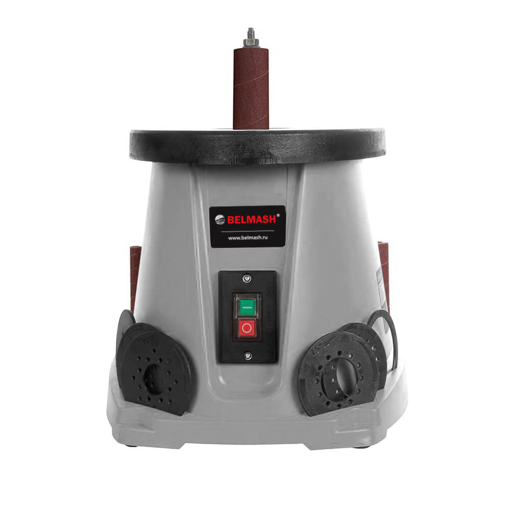 Станок оптимален для работы с кромками, торцами и краями заготовок с вогнутым профилем. В зависимости от кривизны обрабатываемой поверхности подбирают диаметр абразивной втулки (13, 19, 26, 38, 51, 76 мм). Высокая эффективность при использовании оснастки с такой рабочей поверхностью достигается за счет осцилляции – вертикального перемещения вала. Это увеличивает линейную скорость абразива и предотвращает возникновение продольных царапин из-за дефектов оснастки.