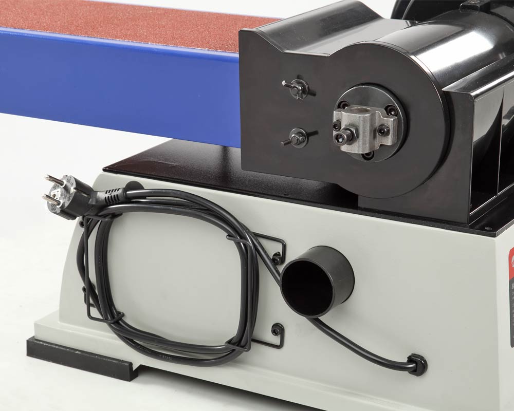 Рабочий стол – алюминиевый с пазом под установку углового упора, используется как при шлифовании лентой, так и диском. Угол наклона стола от 0 до 45 град. Ленточный шлифовальный блок поворотный.
