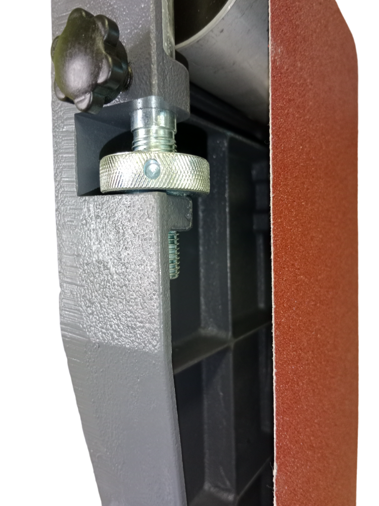 Корпус станка выполнен из литого алюминия. Он имеет два рабочих стола, один для ленточного, другой для дискового шлифования, что удобно, так как при переключении между операциями нет необходимости переустанавливать столы. Рабочие столы изготовлены из алюминия и имеют пазы для установки угловых упоров.