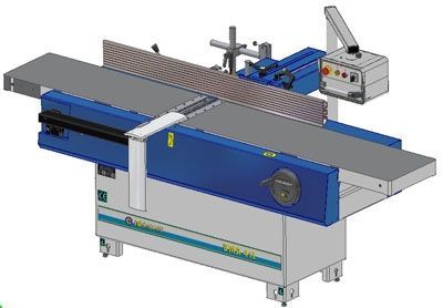 Возможность подъема-опускания столов станка и надежная их фиксация позволяет снимать нужный слой материала качественно и равномерно по всей длине заготовки. Направляющая линейка перемещается поперёк стола в зависимости от ширины строгаемого материала и может быть установлена на нужный угол в вертикальной плоскости от 90ºдо 45°.