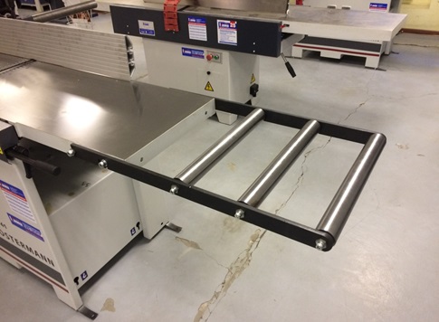 Опционально можно поставить роликовое удлинение стола (длина каждого 500 мм). Данная опция увеличивает базу столов и облегчает обработку длинных изделий. Общая длина столов с удлинениями 2800 мм. |
