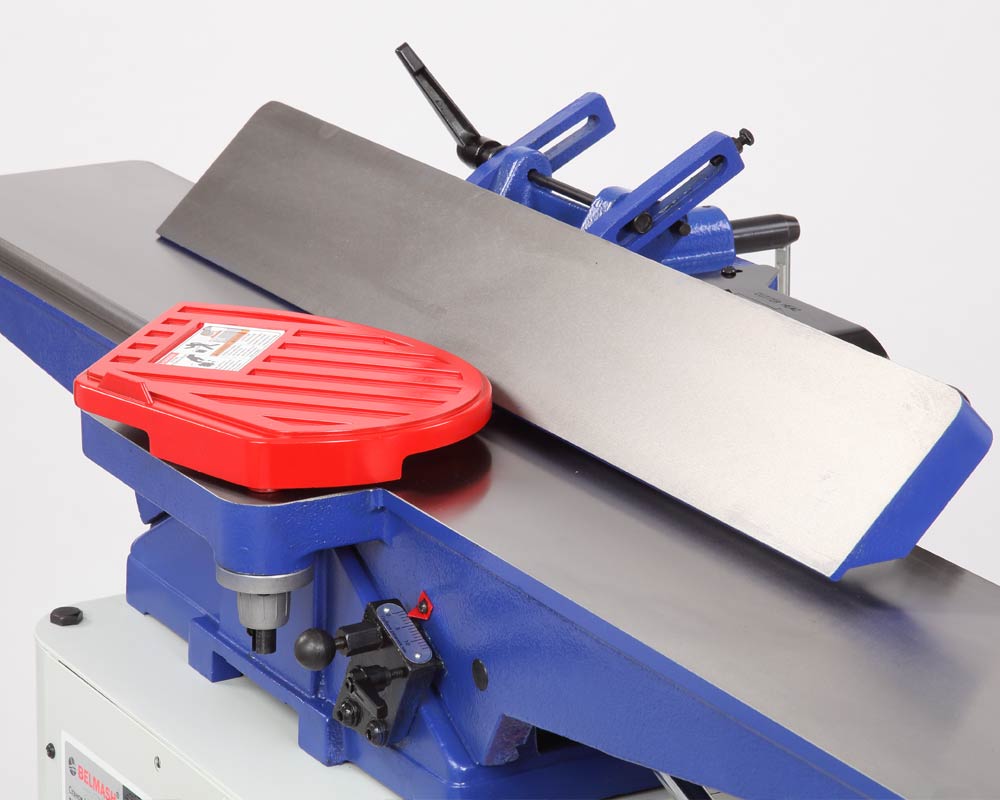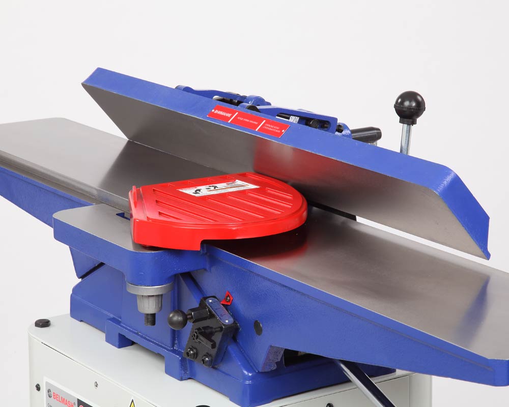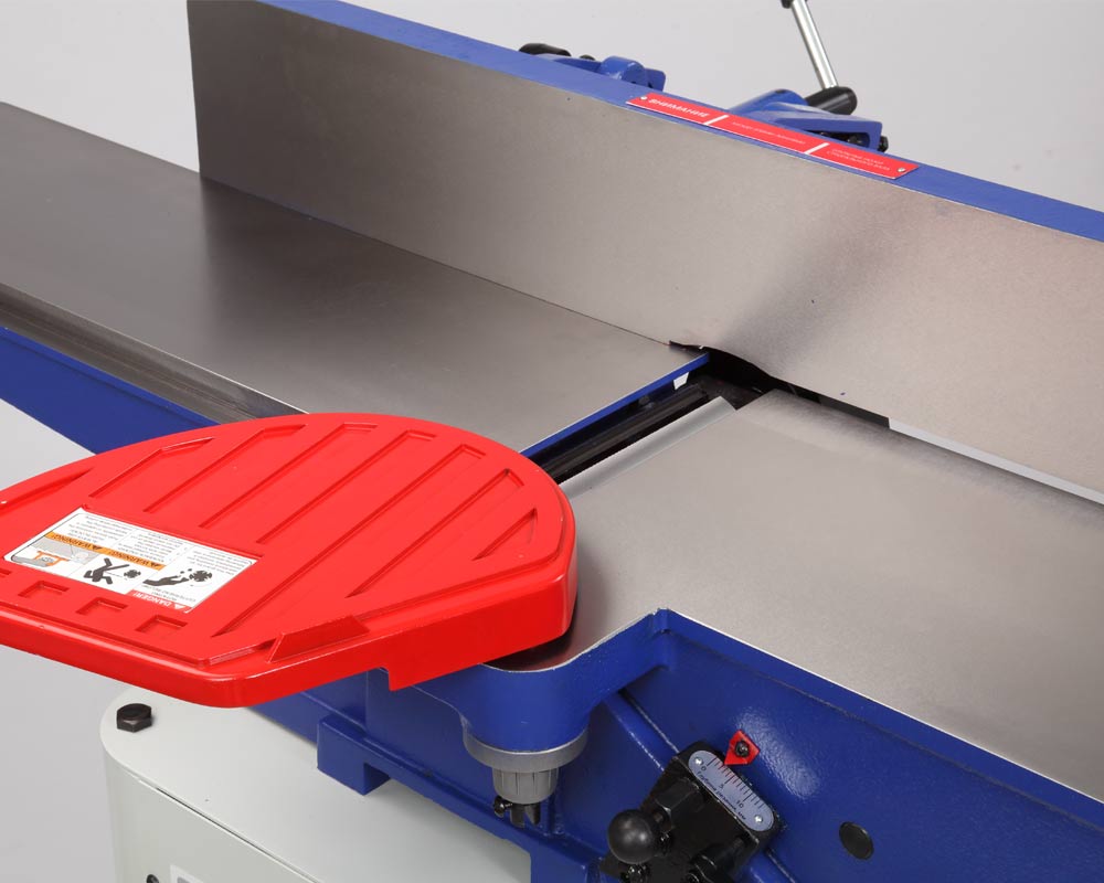 Рабочий стол и параллельный упор выполнены из чугуна. Для безопасной работы станок оборудован литым защитным кожухом ножевого вала. Также в комплекте есть специальные упоры для подачи заготовки.