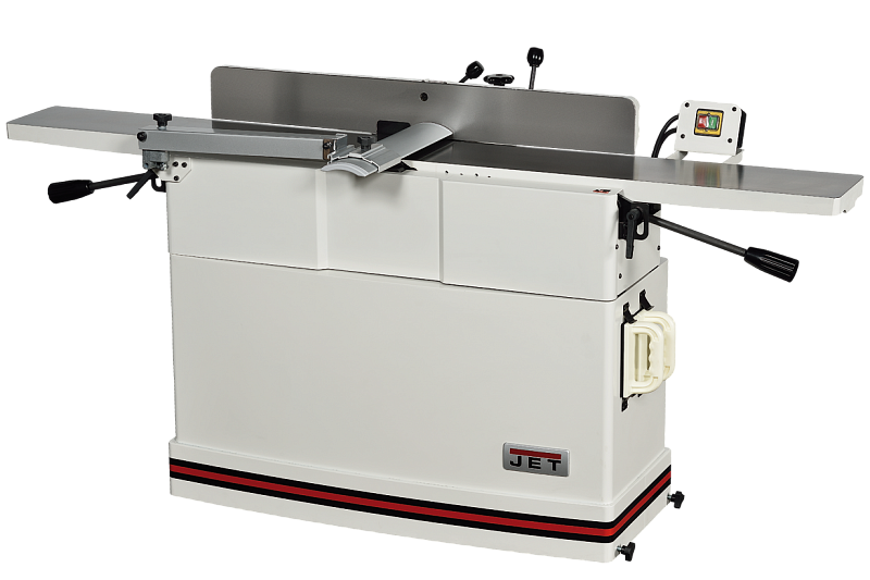 JJ-866 новый фуговальный станок Jet профессионального класса с шириной строгания 200 мм, оборудован длинными массивными чугунными столами. Может в качестве опции комплектоваться строгальным валом helical, который незаменим при работе с твердыми породами, по древесине с сучками и просто при интенсивной эксплуатации.