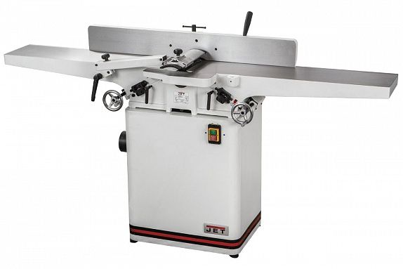 JJ-8L-M — фуговальный станок с длинными чугунными столами и шириной строгания 200 мм. Конструкция образована двумя частями. В нижней, она играет роль тумбы-подставки, однофазный асинхронный мотор и кожух сбора стружки со 100-миллиметровым аспирационным патрубком. В верхней чугунные рабочие столы, защитный кожух, упор заготовки и чугунное основание, где размещен строгальный вал.