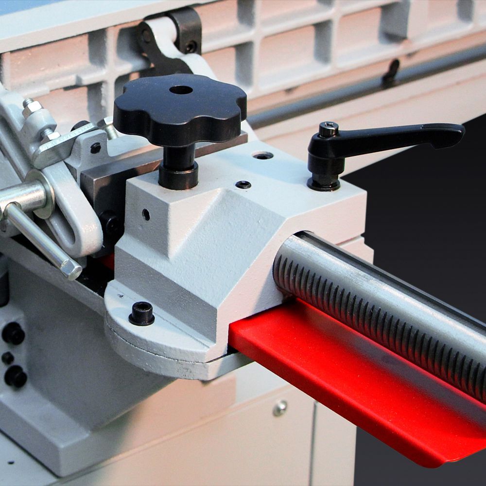 - Установленный по центру большой чугунный параллельный упор, с возможностью наклона от -45° до + 45°.