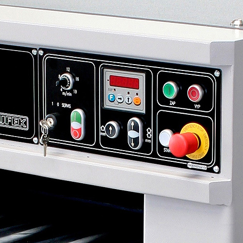 Электрический подъем и опускание рабочего стола осуществляется по 4 направляющим колонам большого диаметра, с точностью 0,1 мм.