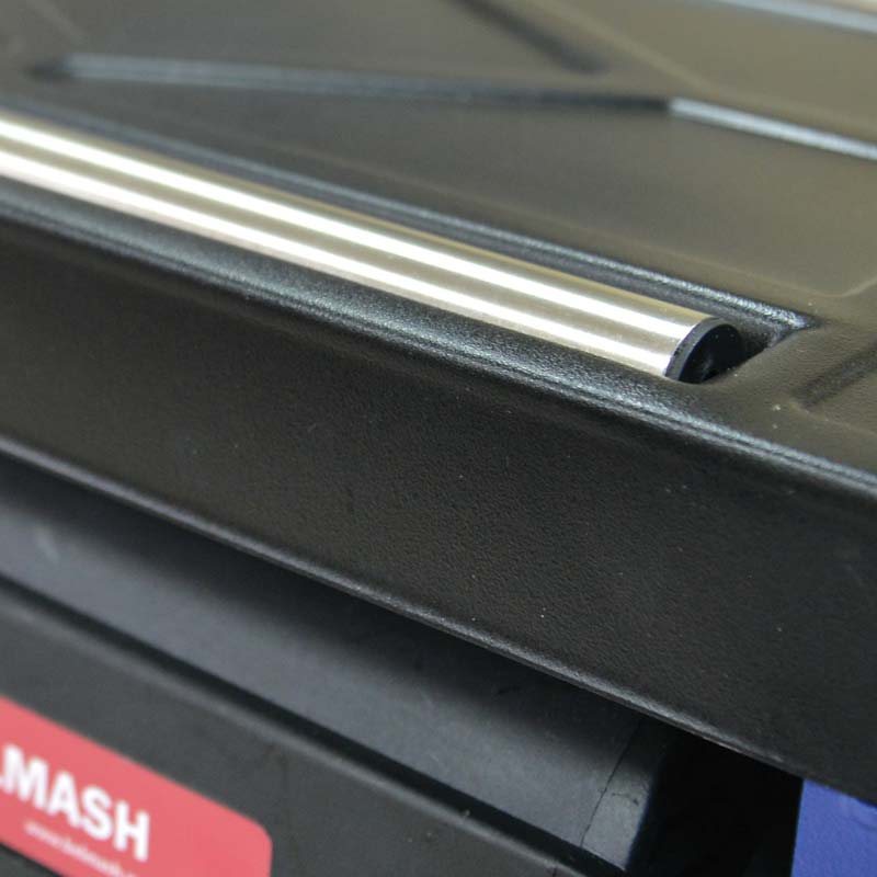 Литой рабочий стол основания покрыт полированным стальным листом. Откидные удлинители: стол подачи и приема, снабжены вспомогательными роликами.