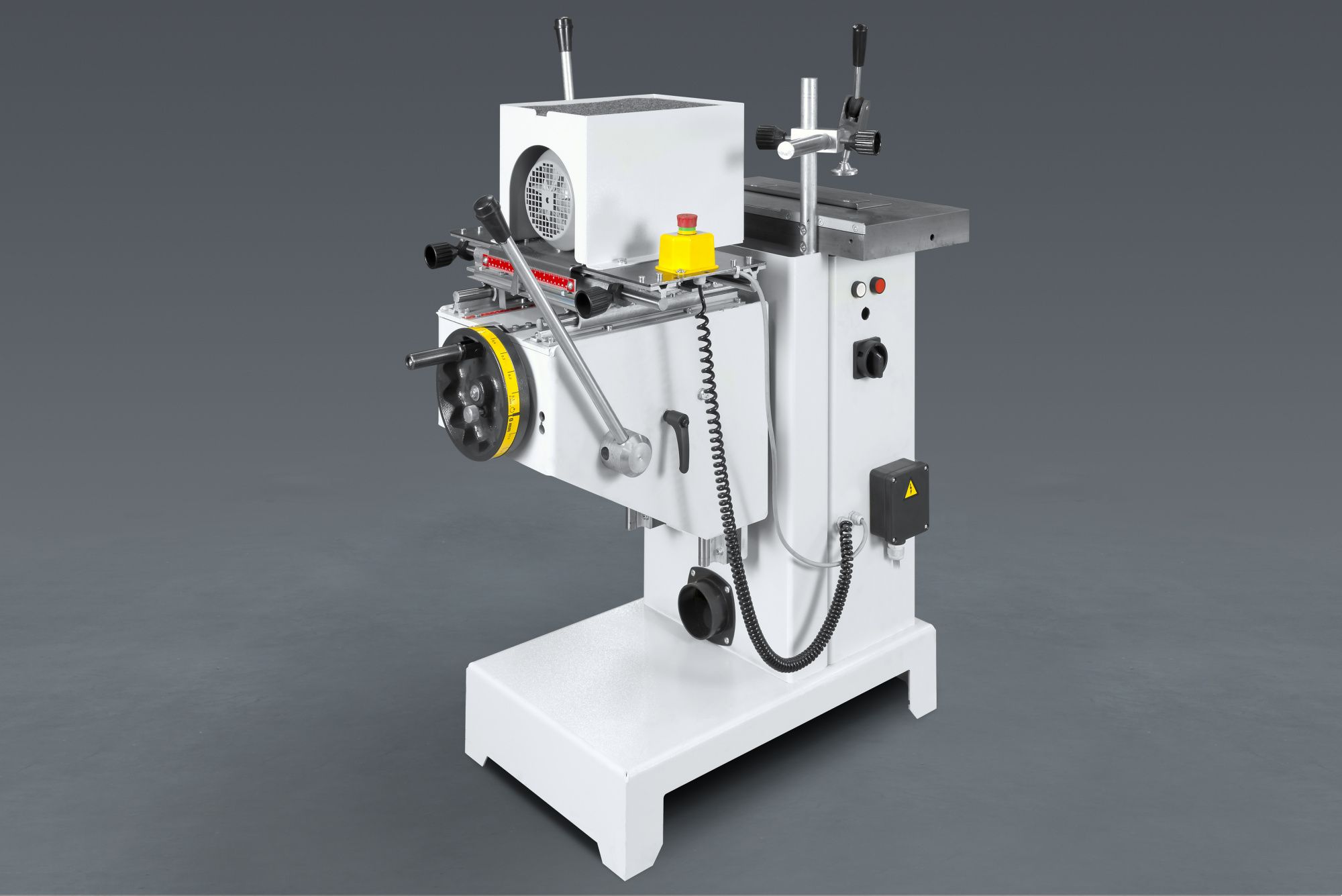 Сверлильно-пазовальный станок Robland LВМ предназначен для выборки пазов и сверления отверстий в деревянных деталях при производстве дверей и окон. Станок имеет прочную стальную конструкцию, сверлильный суппорт и стол изготовлены из чугуна, стол с эксцентриковым прижимом деталей и две рукоятки для перемещения сверлильного узла влево/вправо и вперед/назад. На станке имеются упоры с линейками для выставления размера и глубины паза. Также станок имеет маховик для перемещения сверлильного узла вверх и вниз с точностью 0,1 мм.