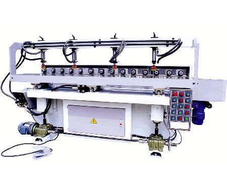 Заготовка (или партия заготовок) устанавливается на стол станка и фиксируется гидрозажимами. Стол имеет возможность продольного перемещения (относительно сверлильных шпинделей) для получения отверстий в деталях, а для получения пазов сверлильным шпинделям передается поперечное перемещение относительно заготовки.- Станина станка массивная литая, полностью исключающая малейшие вибрации при обработке.