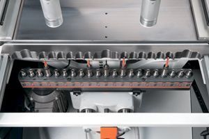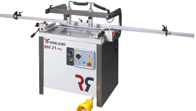 Сверлильно – присадочный станок Robland ВМ 21 PRO предназначен для сверления отверстий под фурнитуру, крепежные элементы, петли и т.д. в деталях мебельного производства. Станок имеет 21 шпиндель. Наклонный сверлильный суппорт может быть установлен вертикально – для сверления отверстий в пласти, горизонтально – для сверления отверстий в торце заготовки, а также под любым углом от 0° до 90°. Сверлильный суппорт имеет поперечную регулировку, с цифровым счетчиком, для настройки на толщину заготовки при сверлении в торце или точного расстояния от края заготовки до отверстия при сверлении в пласти. Станок имеет плавную регулировку скорости сверления.
