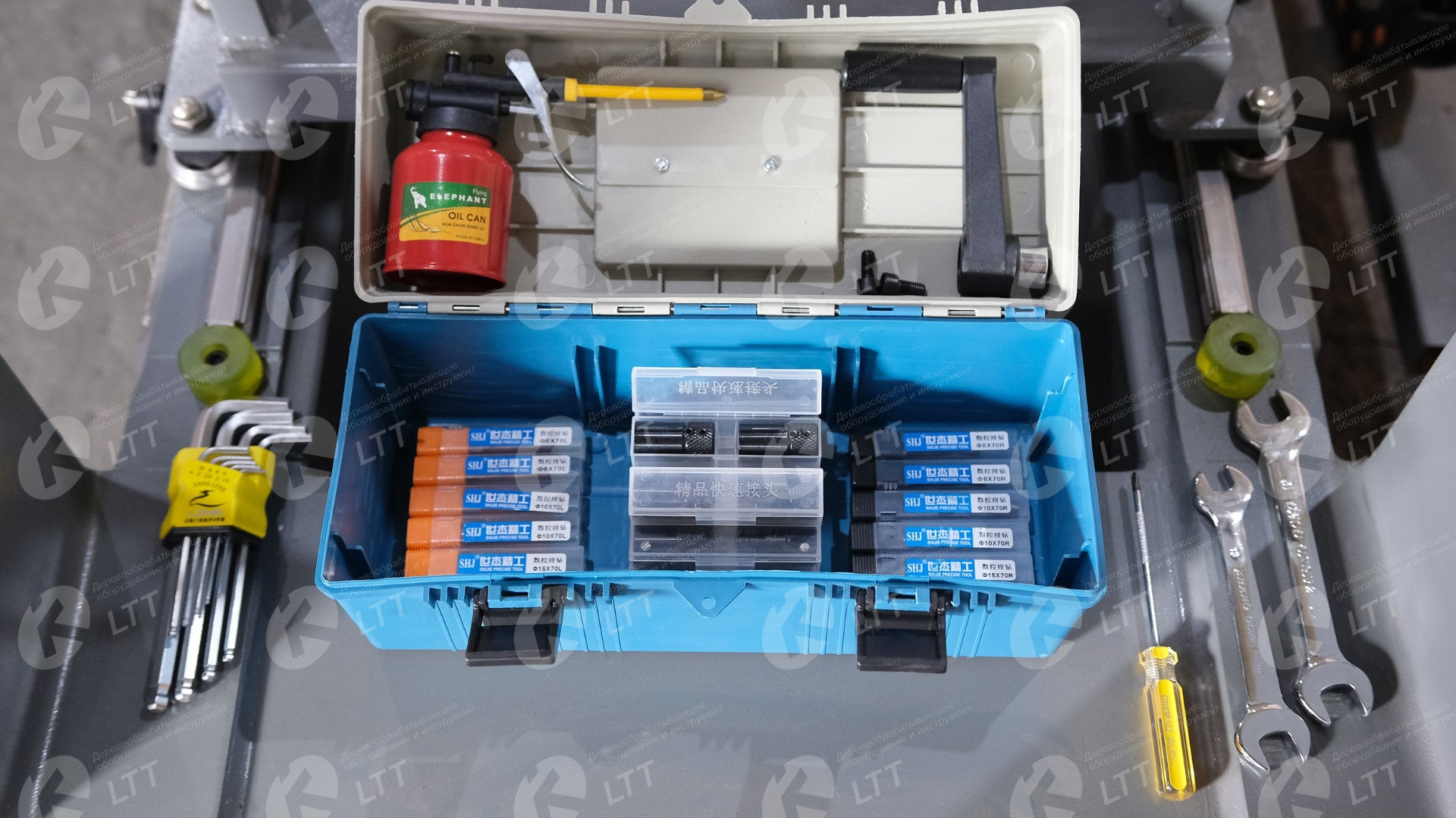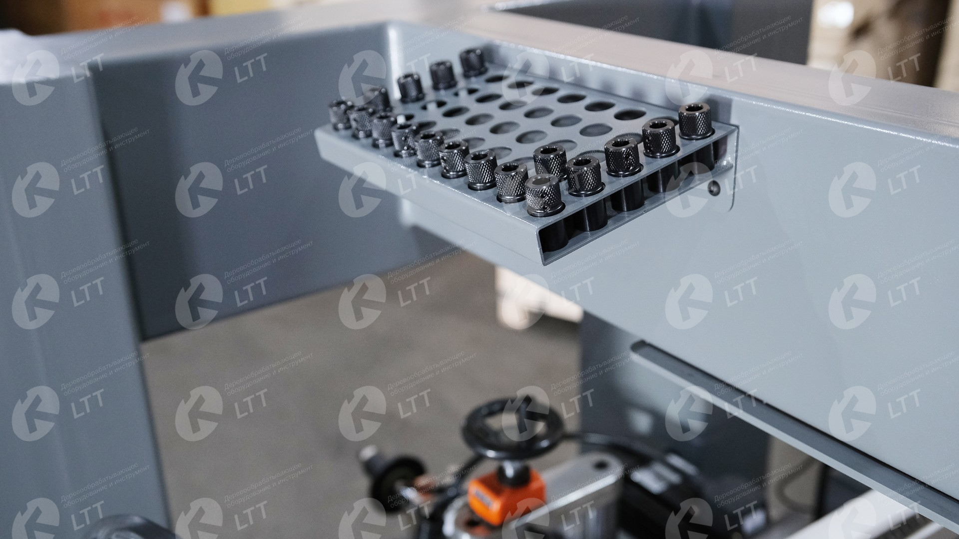 Удобное расположение полки для хранения рабочего инструмента позволяет оператору экономить время при перенастройке станка с одной карты присадки на другую.