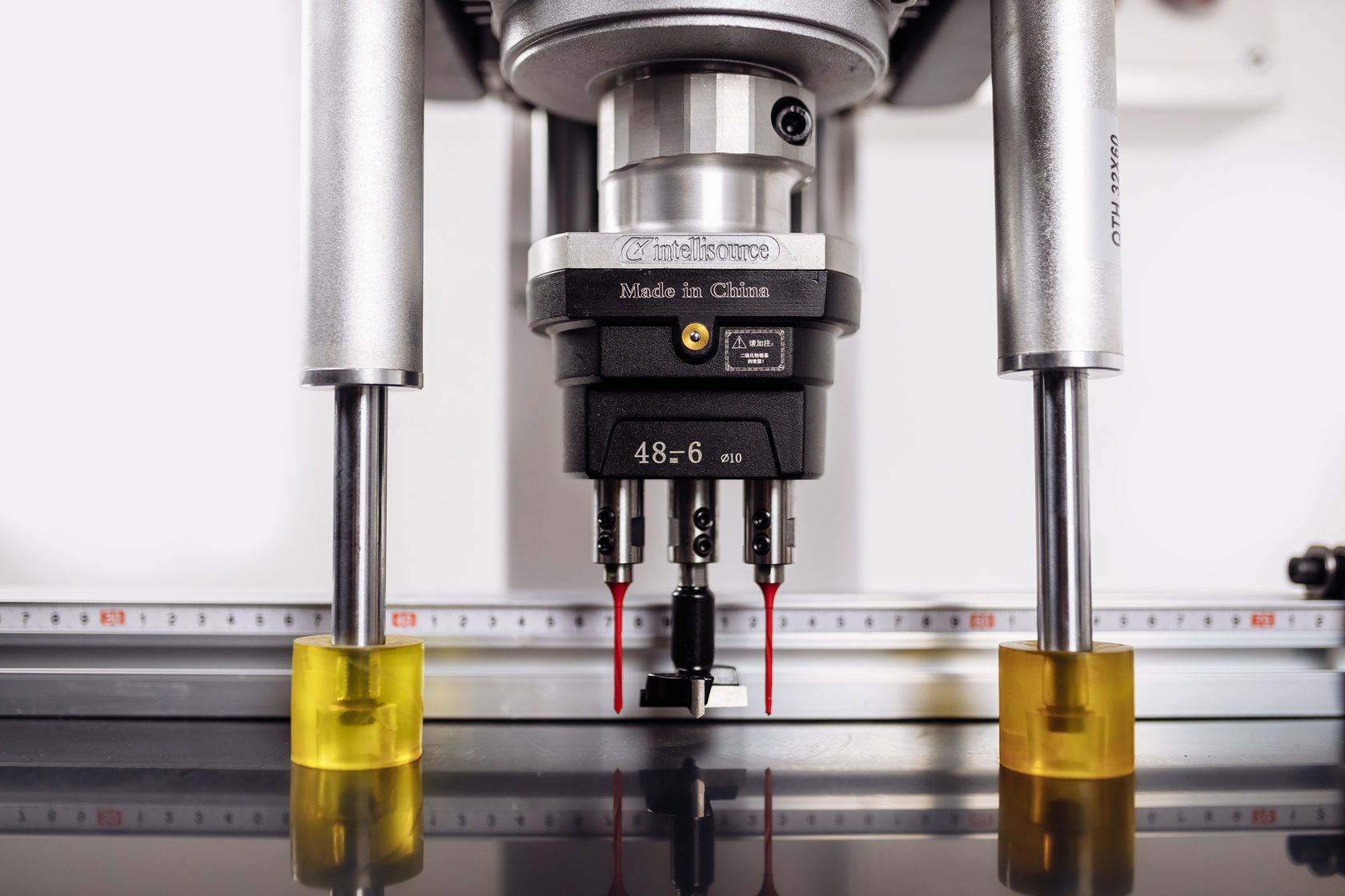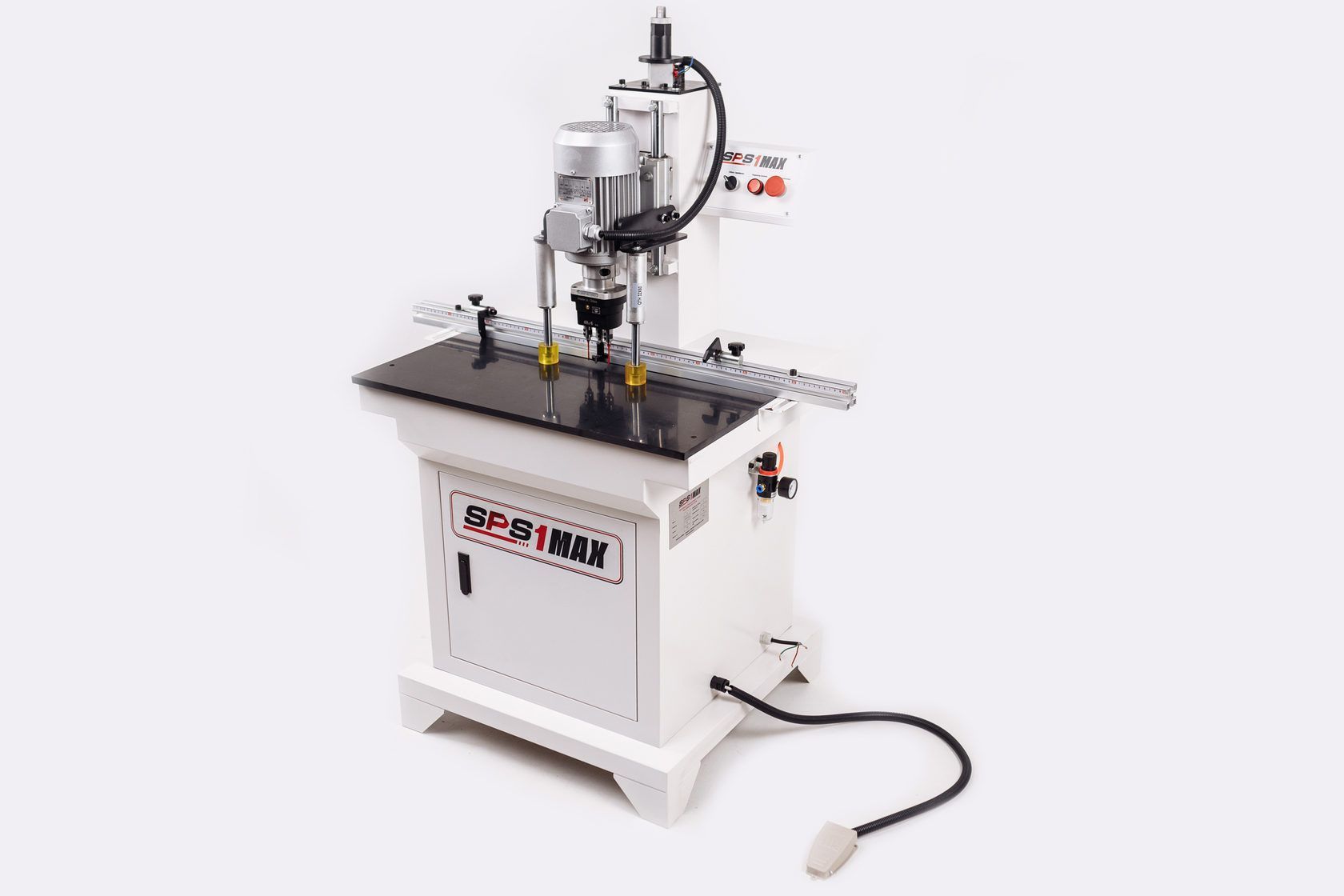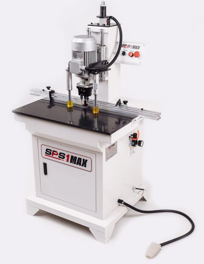 Полноразмерный, сверлильно-присадочный станок «SPS 1 MAX» с собственной станиной, предназначен для рассверловки мебельных фасадов под петлю одновременно с двумя отверстиями под крепежные саморезы (три сверла в комплекте со станком). Так же его можно использовать для точного сверления в плоскость под эксцентриковые стяжки (RAFIX или MINIFIX). Напряжение от сети в 380V, так же для работы потребуется компрессор. За счет механизма регулировки по высоте сверления позволяет без возникновения брака работать с фасадами различной толщины (до 50мм). Оснащен прижимами для фиксации фасада (или детали), а так же линейкой для быстрого выставления отступов сверления от краев. Управление станком осуществляется с помощью пульта управления удобно расположенным для оператора выше уровня станины. Будет особенно востребован на серийном мебельном производстве или в цеху «мебели под заказ», где специфика производства предполагает большое количество фасадов, например производство кухонь или мебель для садиков.