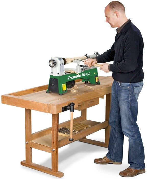 - Легкий и компактный настольный токарный станок по дереву с чугунными станиной и передней и задней бабками.