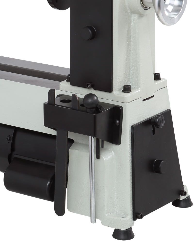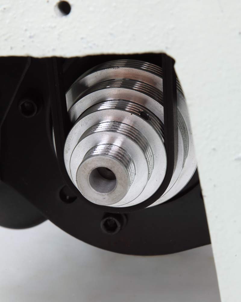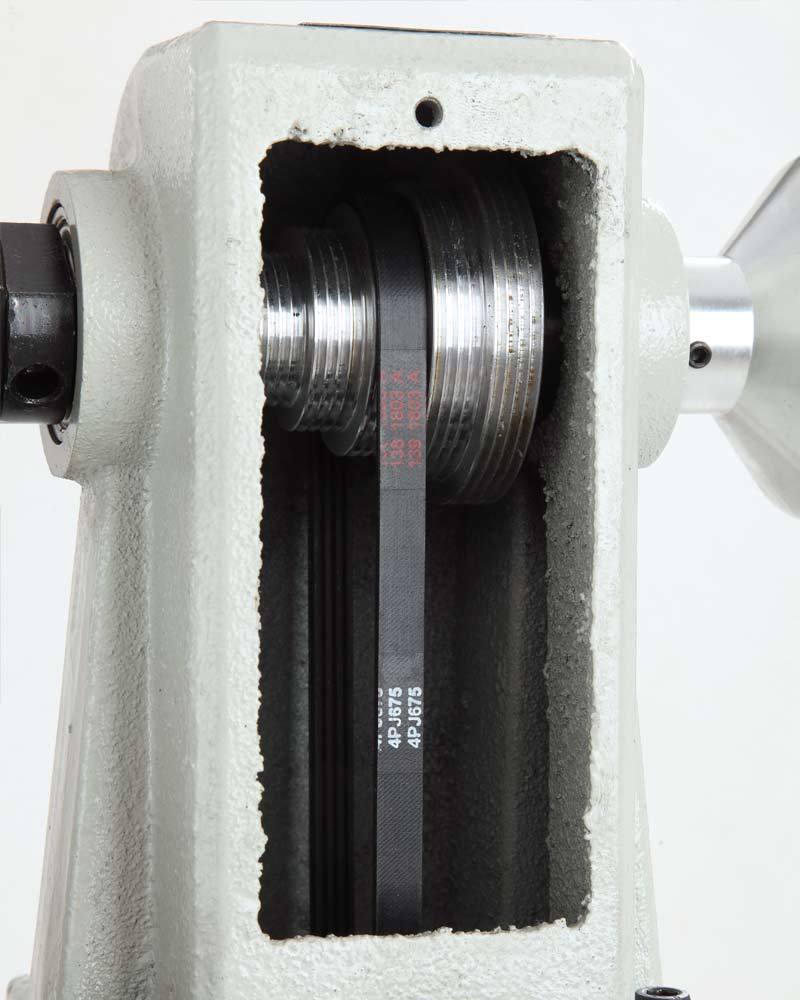 Простота смены скорости вращения шпинделя передней бабки, достаточно просто перекинуть приводной ремень на соответствующий шкив. Всего станок имеет пять положений ремня, которым соответствуют следующие скорости: 430/750/1150/1800/2800