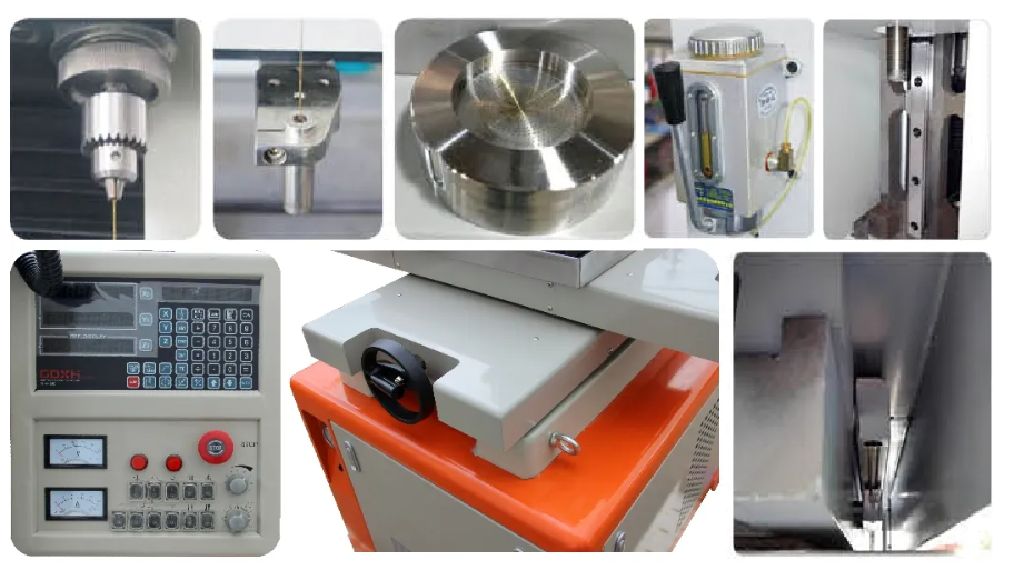 Электроэрозионный сверлильный станок оснащен прецизионными линейными направляющими с высокой точностью. Станки этой серии подходят для обработки нержавеющей стали, закаленной стали, твердых сплавов, меди, алюминия и других проводящих материалов. Диаметр обрабатываемого отверстия составляет от 0,3 до 3,0 мм, максимальное соотношение глубины к диаметру — более 300:1, максимальная скорость обработки — 60 мм в минуту. Оси X и Y стола оснащены цифровыми дисплеями.