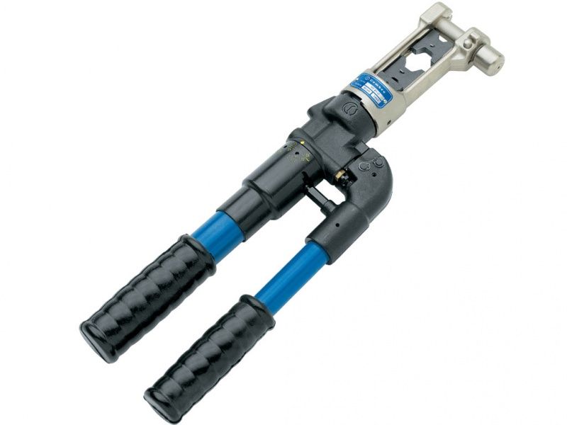 Эта новая модель, легкая и универсальная, использует запатентованный механизм запирания и отпирания фиксирующего матрицу штифта. Широкий спектр наконечников можно обжать небольшим количеством матриц благодаря их уникальной конструкции с двумя вырезами. Также можно установить матрицы для резки кабелей из меди, алюминия и его сплавов, а также сталеалюминиевых.