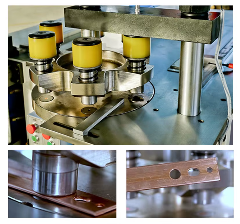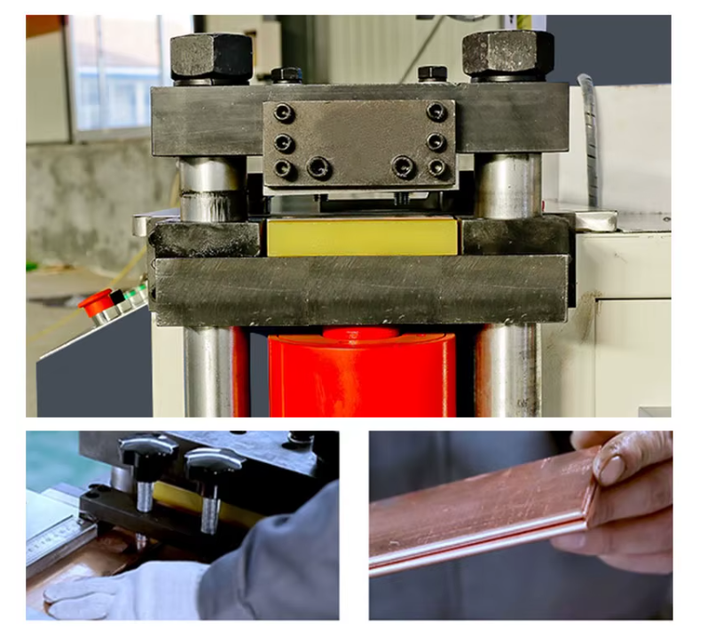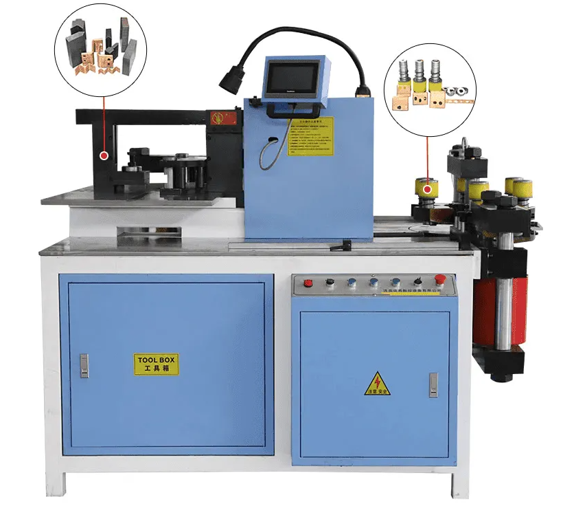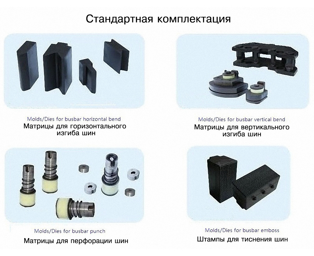 - Три модуля станка: шинорез гидравлический, шиногиб гидравлический и пресс гидравлический для перфорации электротехнической шины.
