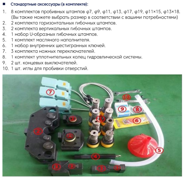 - Три модуля станка: шинорез гидравлический, шиногиб гидравлический и пресс гидравлический для перфорации электротехнической шины.