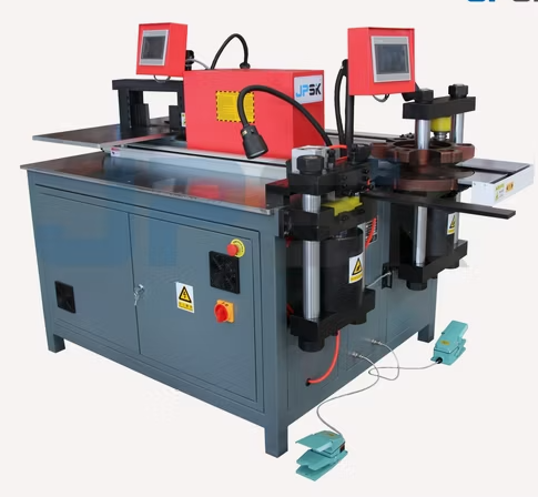 3. Многофункциональная гибочный станок имеет три двигателя и систему гидравлических насосов, которые могут одновременно работать с гибкой штамповкой и резкой трех рабочих блоков