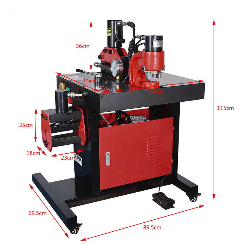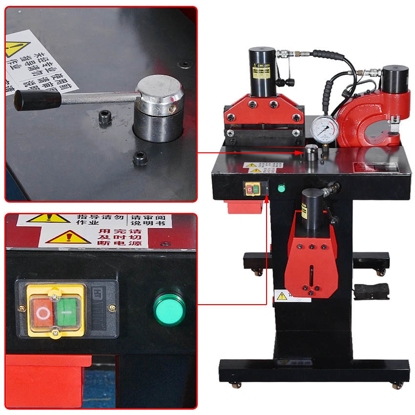 Многофункциональный станок для обработки шин DHY-150 с электрогидравлическим приводом предназначен для резки, гибки и перфорации стальных, медных и алюминиевых токопроводящих шин с максимальной шириной шины 150 мм.