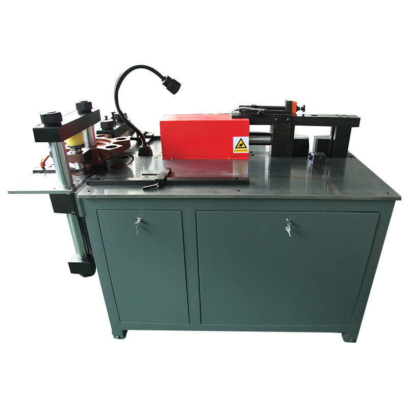 Станок для гибки шин с ручным управлением может резать, сгибать и штамповать шинопровод из меди и алюминия с помощью трех работающих одновременно станций.