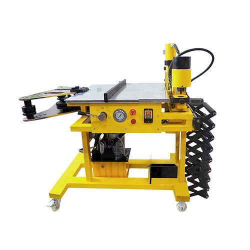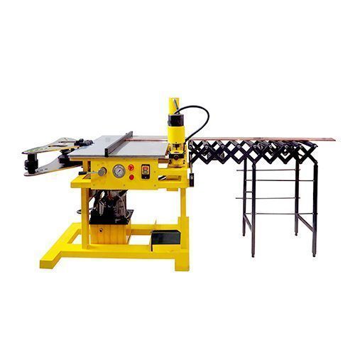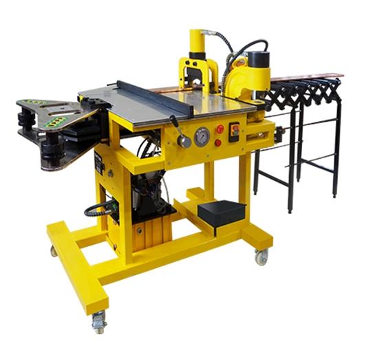 - Модернизированный перфоратор оборудован параллельным упором, позволяющим пробивать отверстия на фиксированном расстоянии от края шины. По желанию клиента возможна установка на станок перфоратора, оборудованного автоматическим прижимом шины. Перфоратор расположен у края рабочего стола, для удобства перфорации в уже изогнутой шине;