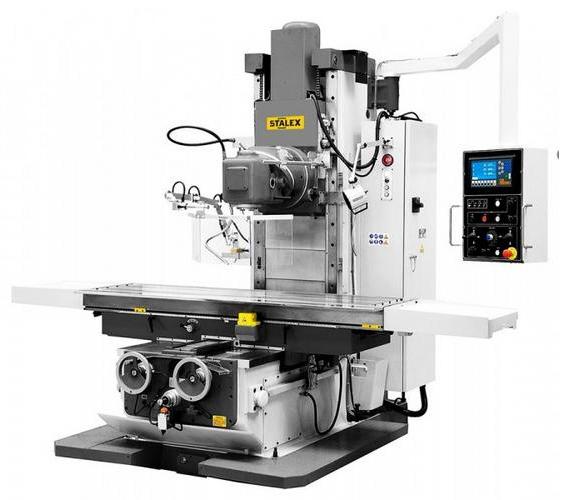 Бесконсольные универсальные фрезерные станки STALEX BFM2200 Servo используют для обработки крупногабаритных деталей торцовыми, а также цилиндрическими, концевыми, дисковыми и фасонными фрезами. Обработку деталей можно производить при движущемся столе и неподвижной фрезерной головке, при неподвижном столе и подачи головки или при одновременно движущимся столе и фрезерной головки. Фрезерная головка вращается в двух плоскостях не зависимо друг от друга на угол 360º, что позволяет вести фрезерование под углом, как в горизонтальном, так и в вертикальном положении фрезерной головы. Бесступенчатая продольная и поперечная подачи. Станина выполнена из серого чугуна по технологии цельного литья. Возможность ручного зажима осей, не участвующих в перемещении позволяет повысить жесткость и снизить вибрации от режущего инструмента. Сервомотор осуществляет подачу осей с возможностью плавного изменения скорости подачи. Специальное приспособление для поддержания режущего инструмента при работе с горизонтальным шпинделем устанавливается на неподвижном основании станины и придает дополнительную жесткость.