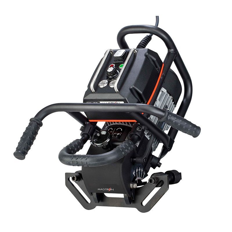 На этой машине можно точно выставить угол снимаемой фаски от 0 до 60 градусов. Максимальная ширина фаски, которую может снять кромкорез MAGTRON - 60E - 24 мм. и это наибольшее значение для машин подобного типа. Другие машины снимают максимум 21мм. Кроме торцевания и снятия фаски с плоской поверхностям MAGTRON - 60E предназначен для обработки торцов труб диаметром 150–300 мм. Для этого необходимо лишь переставить направляющую с роликами, которые идут в комплекте.