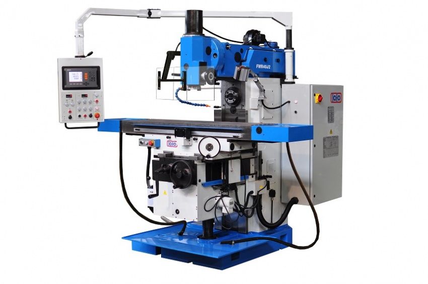 Универсальный фрезерный станок «FWR40J2» представляет собой новую модель станка из серии машин консольного типа. Станок, кроме обычного горизонтального шпинделя с конусом 7:24 ISO 40 / 50, оснащен наклонной вертикальной фрезерной головкой с конусом шпиндя 7:24 ISO 50, которая расположена в верхней части станка и приводится в движение отдельным двигателем. Вертикальная головка наклоняется в обе стороны ±45°, что дает возможность обрабатывать поверхности, которые не доступны обычным вертикальным фрезерным станкам.