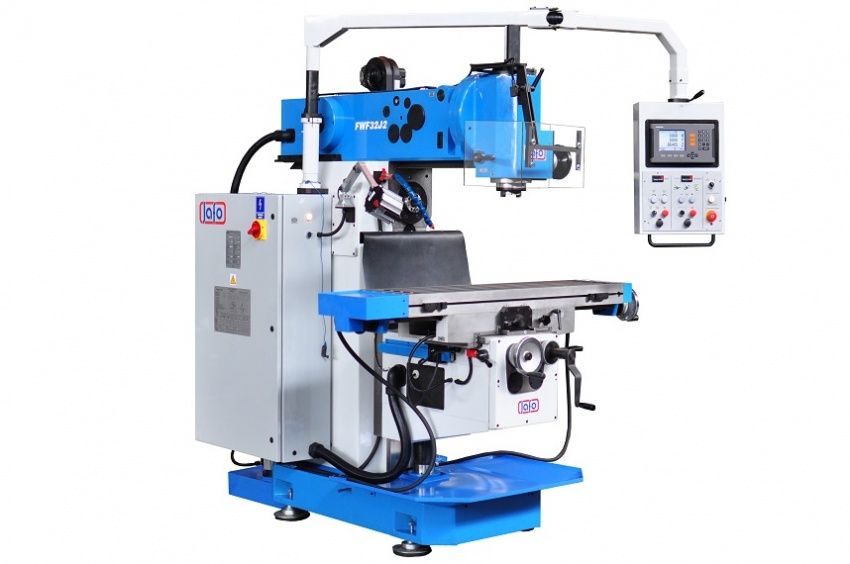 Универсальный фрезерный станок «FWF 32J2» представляет собой новую модель станка из серии машин консольного типа. Станок, кроме обычного горизонтального шпинделя с конусом 7:24 ISO 40, оснащен наклонной вертикальной фрезерной головкой с конусом шпиндя 7:24 ISO 40, которая расположена в верхней части станка и приводится в движение отдельным двигателем. Вертикальная головка наклоняется в обе стороны ±45°, что дает возможность обрабатывать поверхности, которые не доступны обычным вертикальным фрезерным станкам.