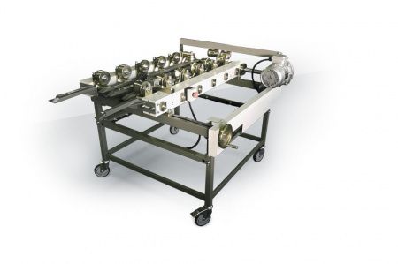 Подвижная каретка, перемещаемая с помощью ручного штурвала, обеспечивает быструю переналадку станка под различную ширину исходной ленты.