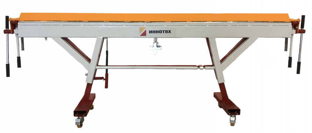 Мобильный гибочный станок ВМ-2100 оборудован колесами со стопорным механизмом, боковым и фронтальным угломером. Предназначен для гибки листа толщиной до 0,8 мм (по г/к Ст.3) при длине рабочей зоны 2100 мм.