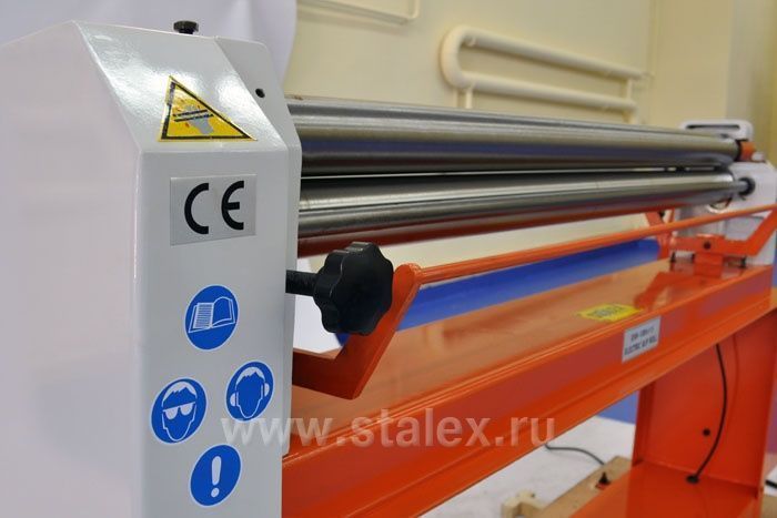 - Верхний валок оснащен поворотно-откидным устройством, зажимом эксцентрикового типа и вращается в обе стороны.